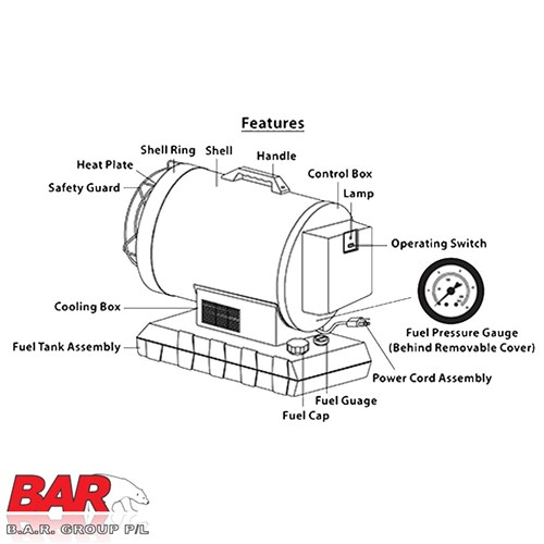 BE's 70,000 BTU diesel radiant heater provides quiet, quick, efficient heat.