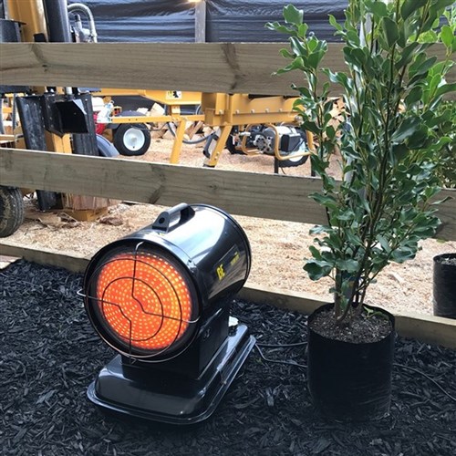 In fact, it’s a lot quieter than comparable conventional diesel heaters and, thanks to its radiant heat plate, it will warm up to 158 Sq Metres of your space, fast.