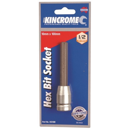 Kincrome 1/2" Drive Inhex socket.Manufactured from SNCM-V steel shaft, hardened, tempered with shot blasted finish.Chrome vanadium steel holder, hardened, tempered and chrome plated for corrosion resistance.