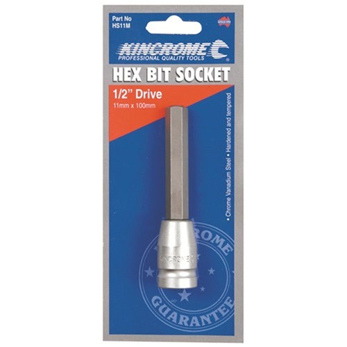 Kincrome 1/2" Drive Inhex socket.Manufactured from SNCM-V steel shaft, hardened, tempered with shot blasted finish.Chrome vanadium steel holder, hardened, tempered and chrome plated for corrosion resistance.