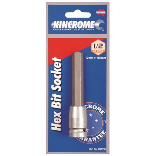 Kincrome 1/2" Drive Inhex socket.Manufactured from SNCM-V steel shaft, hardened, tempered with shot blasted finish.Chrome vanadium steel holder, hardened, tempered and chrome plated for corrosion resistance.