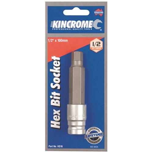 Kincrome 1/2" Drive Inhex socket.Manufactured from SNCM-V steel shaft, hardened, tempered with shot blasted finish.Chrome vanadium steel holder, hardened, tempered and chrome plated for corrosion resistance.