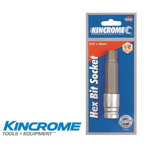 Kincrome 1/2" Drive Inhex socket.Manufactured from SNCM-V steel shaft, hardened, tempered with shot blasted finish.Chrome vanadium steel holder, hardened, tempered and chrome plated for corrosion resistance.