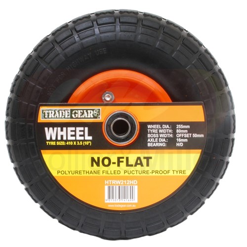 Trade Gear® flat free wheel is designed for fitment to equipment that requires a 50mm offset hub. Ideal as a replacement for bag trolleys with a 16mm (5/8") axle.