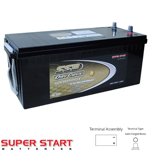 Super Start AGM Deep-Cycle Battery HVT-160D. SSB Dry Cell Ultra High Performance AGM Deep-Cycle Batteries are built for the most discriminating buyer who is looking for only the Best. They are a Non-Spillable sealed Genuine AGM Battery that feature unrivalled power and durability and are a true dual purpose battery. Not only can it be used as a deep-cycle battery, it can also be used as a starting battery making it the perfect choice for 4WDs.