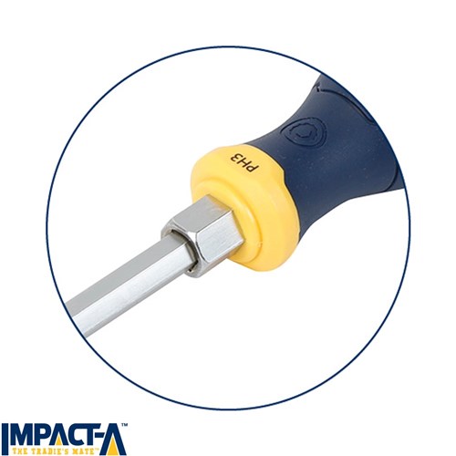 The IMPACT-A 8 Piece Screwdriver Set is built to tackle demanding tasks with durability, strength, and comfort. Each screwdriver features a robust S2 alloy steel shaft that extends through the handle, delivering exceptional torque and stability for heavy-duty use. The matte chrome electroplated finish adds corrosion resistance for long-lasting performance.