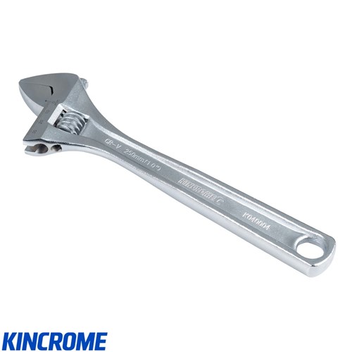 The Kincrome Adjustable Wrench 250mm (10") is the perfect tool for heavy-duty tasks, featuring a max jaw opening of 34mm to handle large fasteners with ease. Built for durability and performance, this wrench is crafted from drop-forged Chrome Vanadium Steel (Cr-V) and coated with both nickel and chrome plating for superior corrosion resistance. The laser-etched metric scale on the jaws allows for quick, precise adjustments, making it ideal for a variety of jobs. A precision-machined thumb screw ensures minimal play in the jaws, providing a secure and stable grip. The I-beam design delivers optimal strength, while the non-protruding movable jaw end allows for better access to tight spaces. Convenient storage is made simple with the hang hole/tether point.
