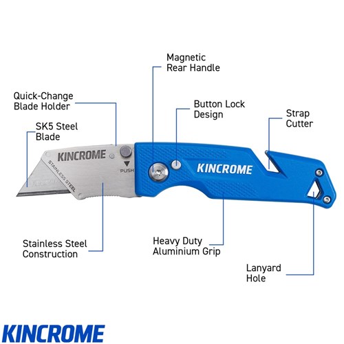 Kincrome Heavy Duty Folding Utility Knife – Magnetic