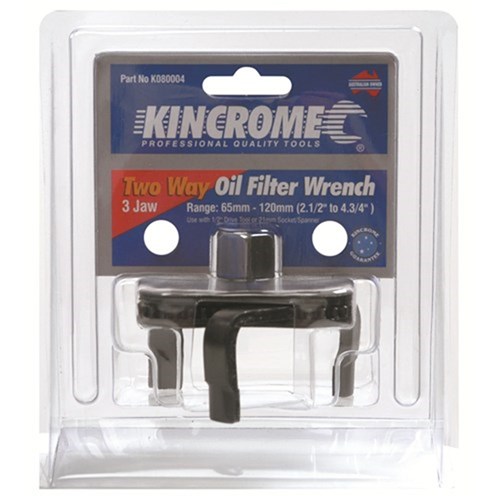 Kincrome Oil Filter Wrench has a 3-jaw design to remove and install oil filters easily and provides excellent gripping. It can be loosened and tightened with a 2-way adjusting method using 1/2" drive and 21mm socket or spanner. It’s manufactured from carbon steel and hardened with black finish for durability.