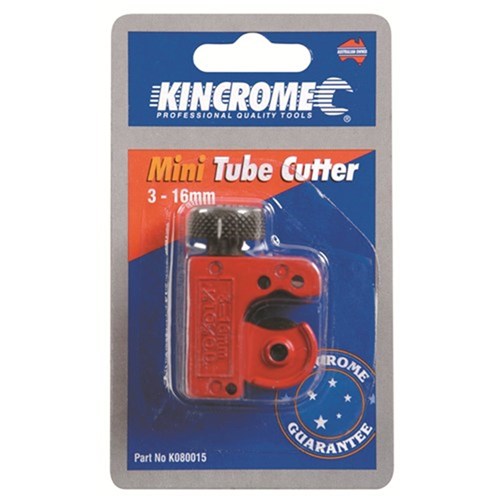 Kincrome mini tube cutter, manufactured from powder coated carbon steelCutting Range: 3-16mm (1/8"-5/8") outer diameter.Overall Length: 50mm. Material: Carbon Steel