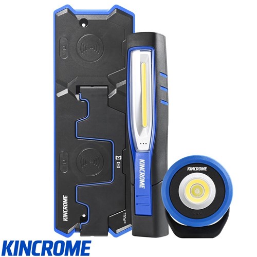 The Kincrome LED Inspection & Area Light Kit with wireless charging includes the K10313 Inspection LED light as well as the K10314 Wireless Charging Pad and the K10315 Dual Wireless Charging Pad.