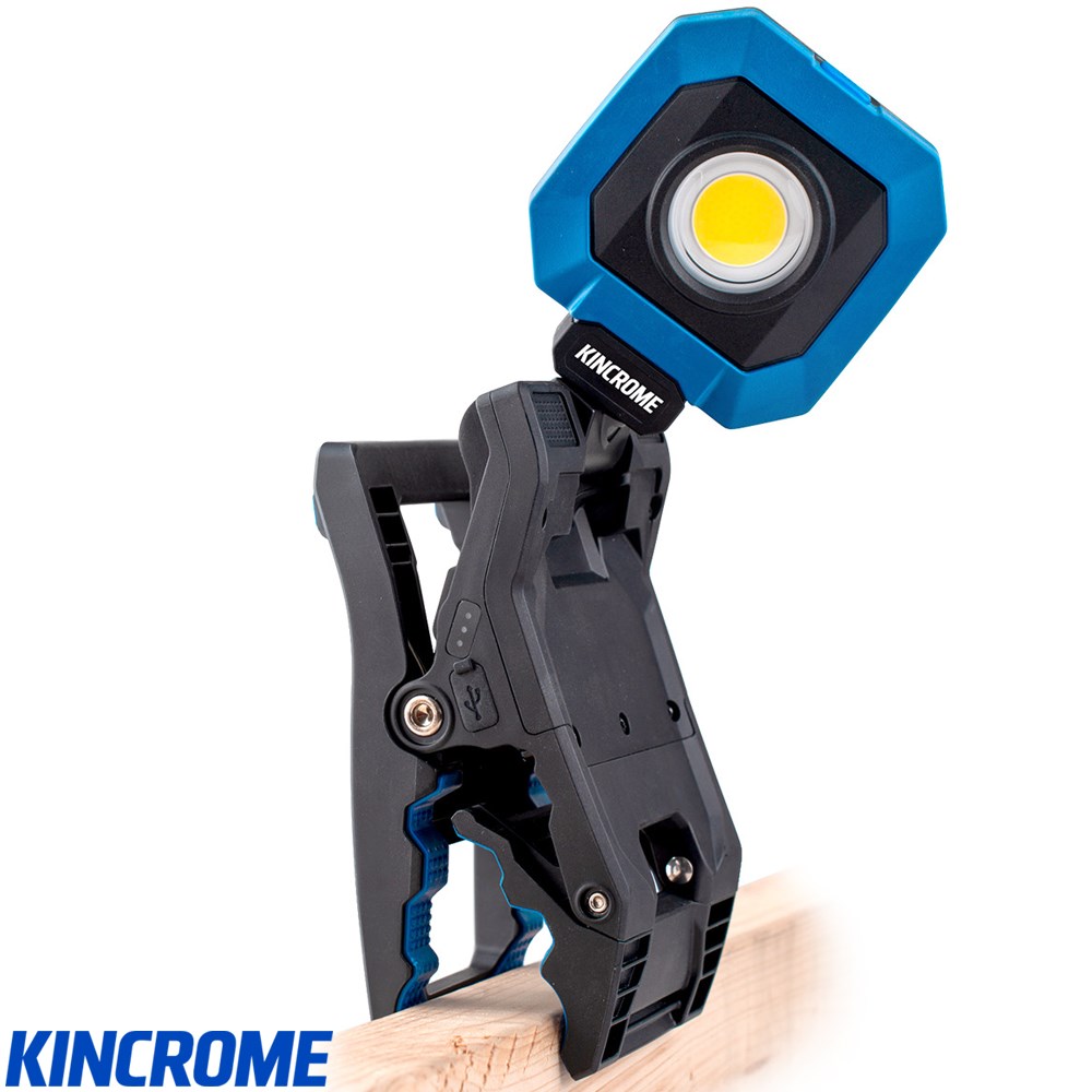 The Kincrome Clamp Area Light is the perfect lighting solution for any professional who needs versatile, hands-free illumination in tough environments. With a 360° rotating and 270° pivoting head, this light offers maximum flexibility for a variety of tasks. The strong rubber-lined jaws can open up to 75mm, allowing it to clamp, magnetize, or stand virtually anywhere for reliable placement. This light features USB recharging with a battery level indicator, so you’ll always know when it's time to recharge. With a durable design built to withstand dust, water, and impacts (IP65 and IK07 rated), the Kincrome Clamp Area Light is designed to take on the toughest conditions, making it an essential tool for workshops, job sites, and outdoor activities.