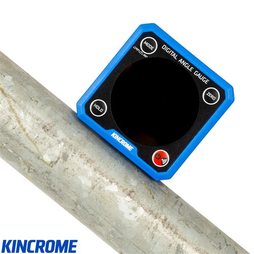 Achieve fast, accurate angle measurements with the KINCROME Digital Angle Gauge, perfect for trade and DIY applications. Compact and reliable, it works on timber, metal, or pipe with ease. Featuring four measurement modes—millimeters, inches, percentage, and degrees—it adapts to any workflow. The auto-rotating, easy-read LCD screen provides clear visibility from any angle, while the hold function locks readings for reference in hard-to-reach areas. Engineered for stability, the strong magnetic base secures to metal surfaces, and V-groove edges ensure perfect alignment on curved materials such as pipes and conduits. Ideal for setting blade angles, checking slopes, or aligning structural elements.