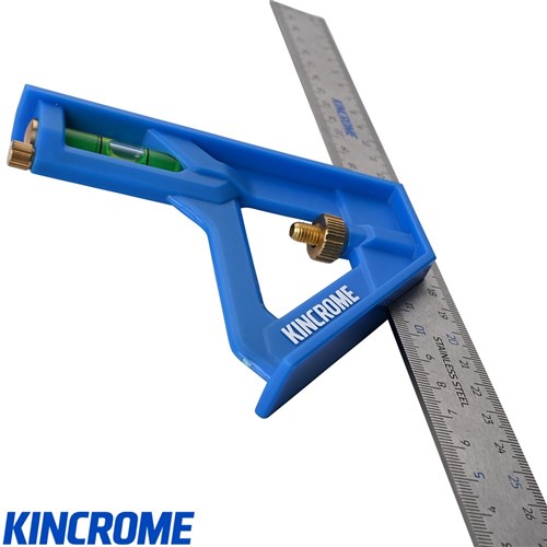 The Kincrome Combination Squares include etched stainless steel blades with each 5cm increment in blue for easy identification. The Combination Squares also feature an easy read vial, brass hardware with the options of die cast and plastic versions available. It also has a convenient scriber pin with on-board storage, so you can measure and mark your job straight away.
