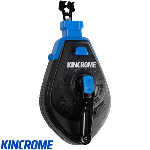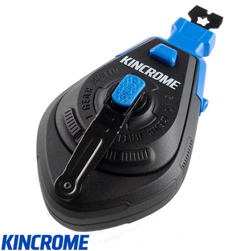 The Kincrome 6:1 gear ratio rewinds the line 6 times faster than traditional chalk reels saving you time. Featuring a hinge locking system allows for quick chalk refill/viewing & reduced chalk spillage,  hub lock allows an easy release and locking button that holds the string in place and made from aluminium.