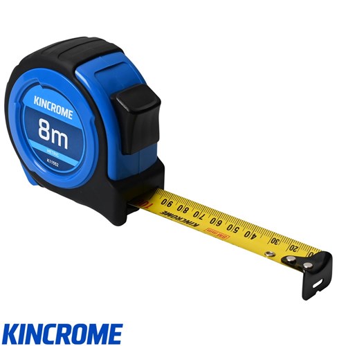 The Kincrome 8m Tape Measure features durability and functionality needed by professionals in all trades. Features include a Nylon metric blade, TPR mould for easy handling and a belt clip for easy access & storage.