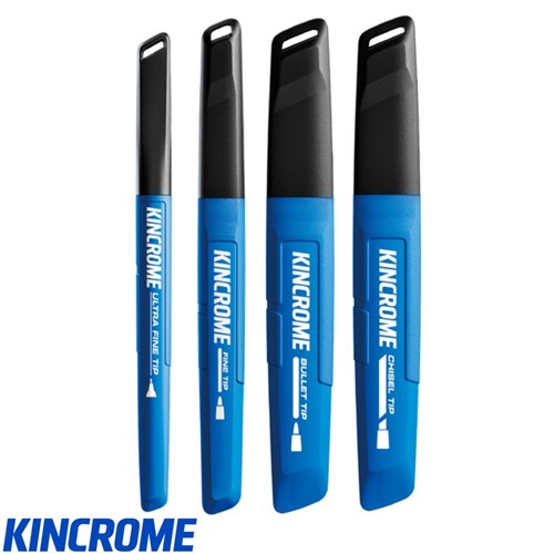 The Kincrome Jobsite Permanent Markers are designed with a durable tip, ideal for writing on metal, concrete, timber and other harsh or dirty surfaces. The quick drying ink can also write on oily, dusty or wet materials.