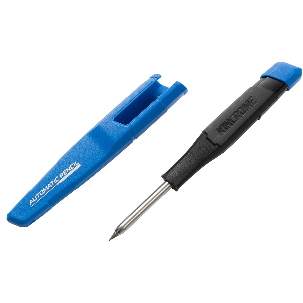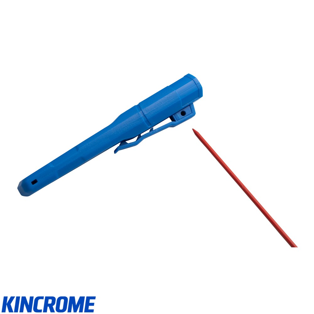 The KINCROME Automatic Mechanical Pencil is a tough, jobsite-ready tool designed to mark on dry, wet, glossy, rough, and dusty surfaces with ease. Featuring a built-in sharpener in the pocket clip, a quick-click lead feed with retractable tip, and a two-in-one cap holster for tip protection and fast access, it combines durability, convenience, and precision—perfect for trades and demanding environments.
