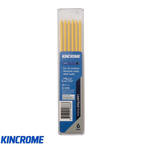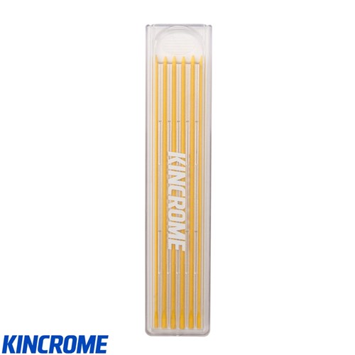 Keep your KINCROME Automatic Mechanical Pencil ready for any job with this 6-piece yellow lead refill set. Each lead is pre-sharpened and protected in a transparent case to prevent breakage. Designed to mark on dry, wet, glossy, rough, and dusty surfaces, these refills deliver reliable performance wherever you work.