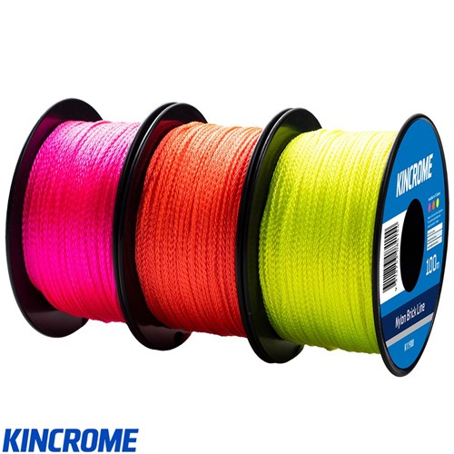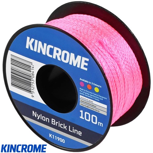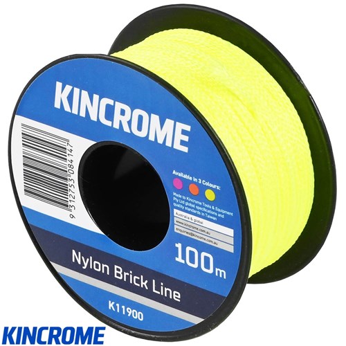 The Kincrome Brick Line is available in 100m reels and comes in three colours: yellow, orange, and pink. It is designed for use by bricklayers, landscape gardeners, and anyone needing a reliable brick line. Made from 8-strand nylon, the line is slightly elasticated for flexibility. It is packaged on a convenient dispensing reel, making it easy to reuse and keep neat in your toolbox or car.