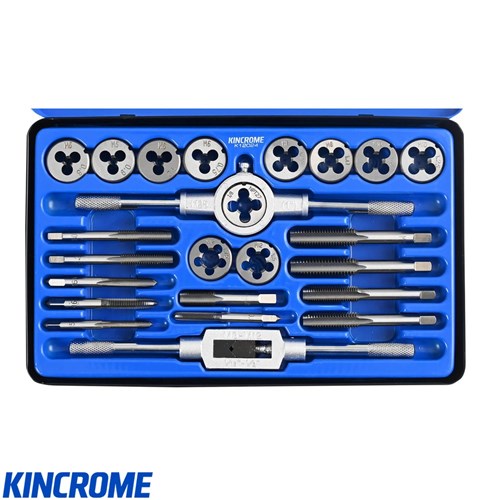 The Kincrome Tap & Die Set 24 Piece Metric is designed for precision thread cutting and cleaning tasks on mild steel and aluminium. Manufactured from high-quality alloy steel with a hardness rating of 58-62 HRC, these taps and dies are built to last, ensuring smooth and reliable performance. Ideal for professionals and DIY enthusiasts alike, this set is perfect for repairing damaged threads or creating new ones. The set is neatly organized in a plastic insert within a durable metal storage case, making it easy to keep your tools organized and accessible.