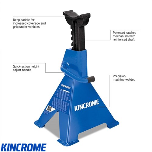 Jack Stands are ideally suited to the professional trade workshop! These Jack Stands (comes as pair) are manufactured from heavy duty steel and feature a Quick Action Height Adjust, Steel Frame & Cast Support, a Deep saddle for positive location under vehicle and a reinforced shaft for added strength stability.