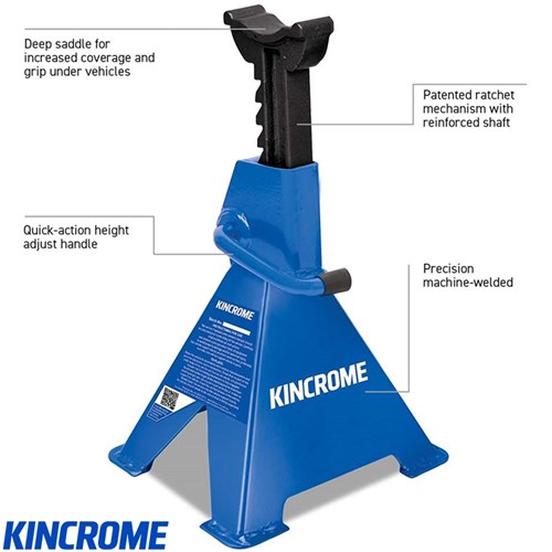 Jack Stands are ideally suited to the professional trade workshop! These Jack Stands (comes as pair) are manufactured from heavy duty steel and feature a Quick Action Height Adjust, Steel Frame & Cast Support, a Deep saddle for positive location under vehicle and a reinforced shaft for added strength stability.