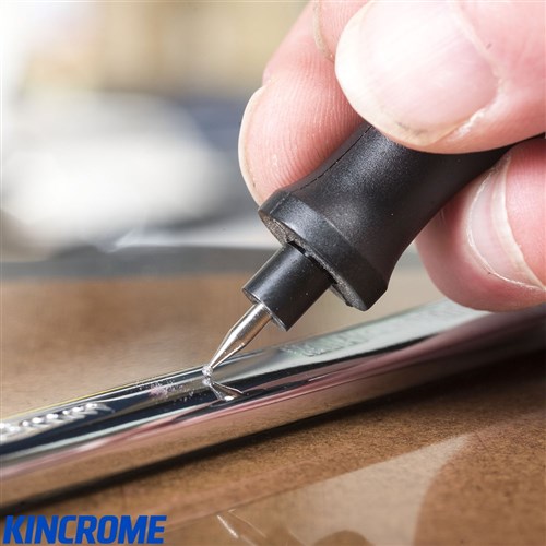 The Kincrome Engraving Pen, is a wireless engraver complete with diamond tip, its perfect for marking property or engraving awards. Presented in its own plastic storage case with batteries supplied. The Kincrome Engraving Pen is perfect for any trade professional.
