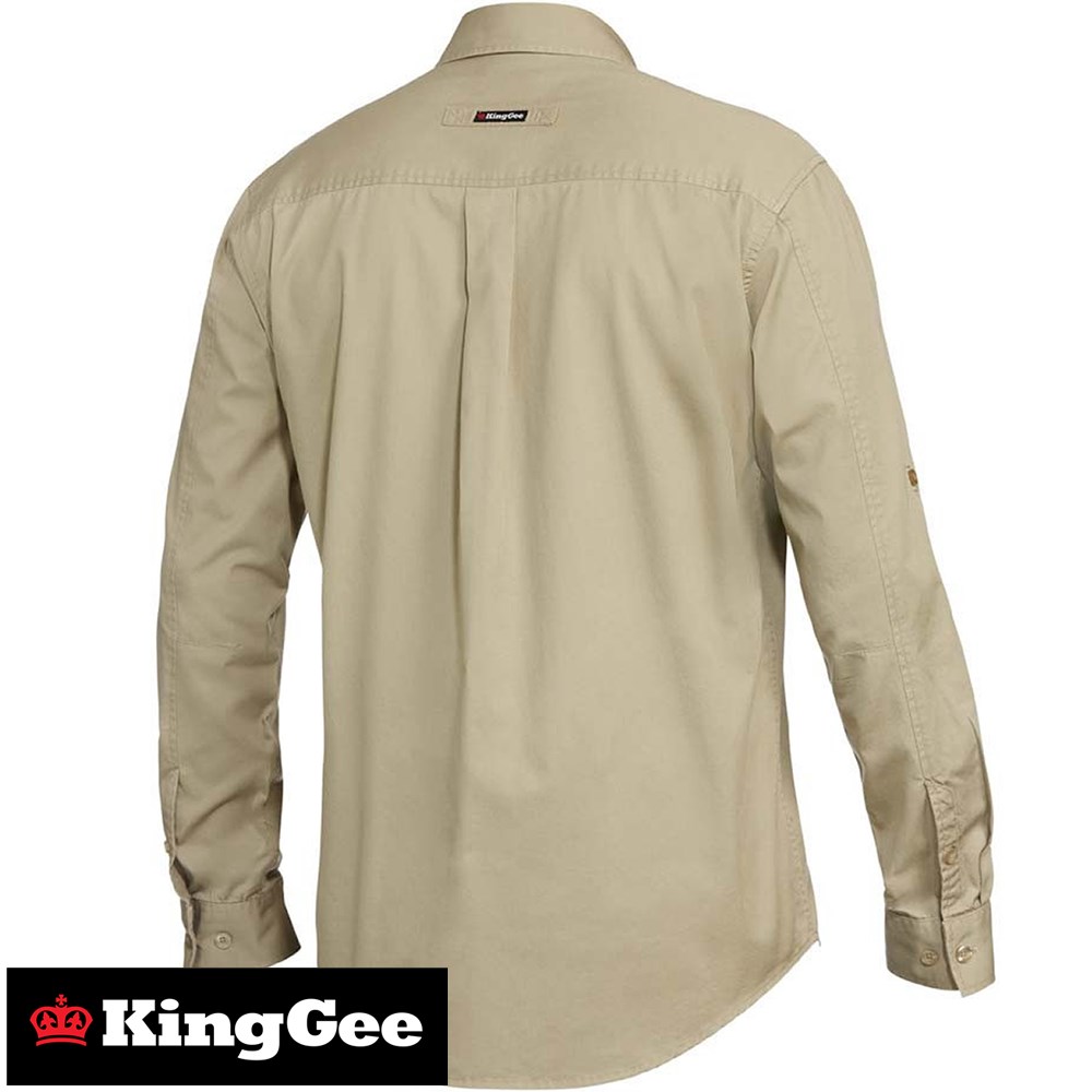 King Gee Mens Slim Fit Long Sleeve Tradie Shirt, Khaki. These Shirts will ensure that you look great with a fashion inspired slim fit design, multifunctional pockets built to help you perform at work and ultra-lightweight fabric to ensure you are comfortable all day long. Made from 145gsm cotton twill.