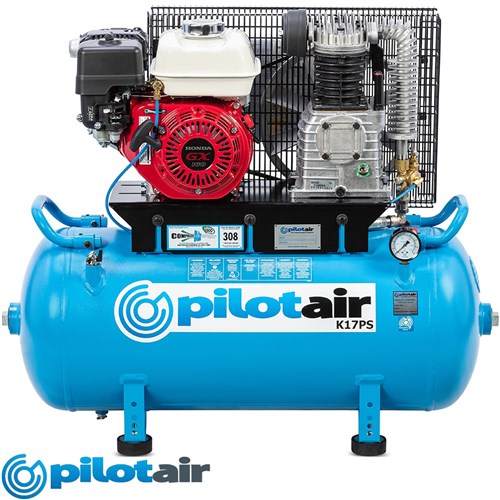 Pilot Australian Built Engine Drive compressor. Bullet proof Honda GX160 5.5HP engine with idle control valve, and twin piston Italian pump. Tank is mounted to channel feet for loading and loading with forklifts. Contact us and we will quote you on a complete set up including regulator, hoses and quick couplings. Download the specification sheet for more detailed information.