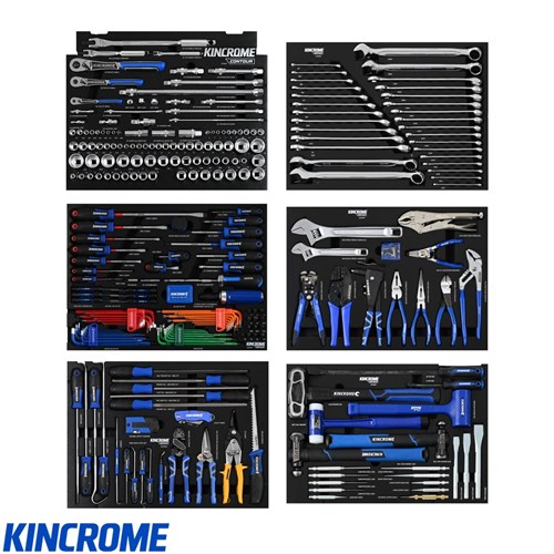 The CONTOUR® range represents Kincrome’s premium line of carts, chests, hutches, trolleys, and tool kits, designed for apprentices, professionals, and trade users seeking the highest quality, durability, and functionality. Developed and designed in Australia, CONTOUR® combines modern styling with superior features, including UV-protected powder-coated finishes, heavy-duty steel construction, stainless steel work surfaces, and modular, customizable storage options. This 455-piece, 12-drawer tool kit delivers a complete professional workshop solution, offering a wide selection of sockets, spanners, screwdrivers, pliers, hammers, punches, specialty tools, and storage accessories—all organised efficiently in a robust, mobile trolley system.