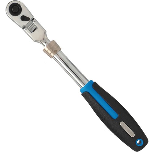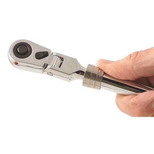 Kincrome Telescopic Flex Head Ratchet, 3/8" Drive. The flexible head is a unique feature that can support any angle within 180 Degree radius. This 72 teeth reverse gear ratchet offers the ability to work in a minimal amount of space allowing the user to work in tight, confined & difficult spaces. The telescopic handle allows the user to extend the handle to 375mm or shorten to 255mm for greater access, with 6 locking positions. Manufactured from Chrome Vanadium Steel this ratchet also features a quick release button which secures sockets to the ratchet & releases them with a single push.