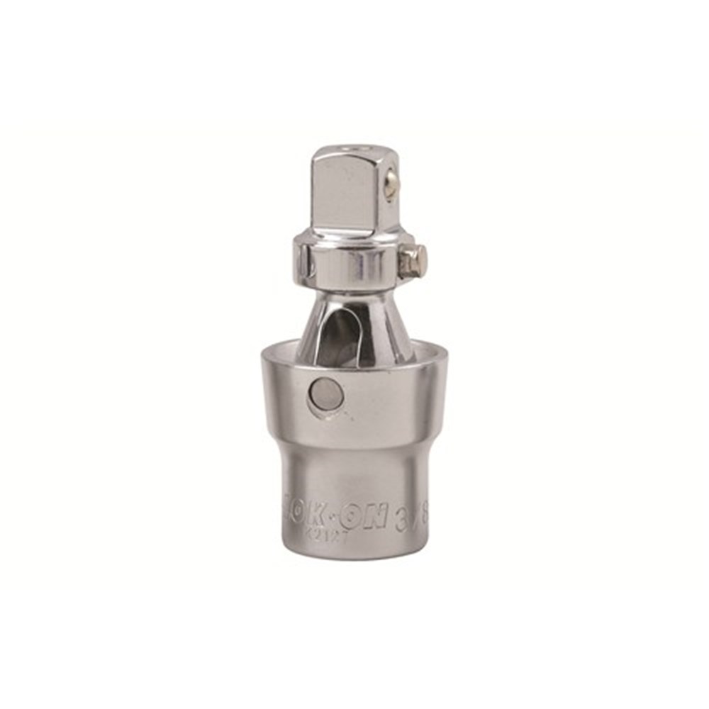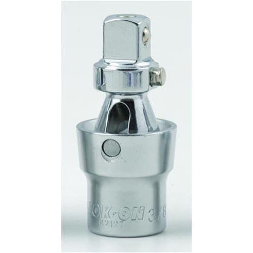Kincrome 3/8" Drive LOK-ON universal joint. Chrome vanadium steel, hardened, tempered, chrome plated and mirror polished for corrosion protection. Allows a smooth action compared to standard Universal Joints which tend to bind under lager angle operation. Includes LOKON feature, which allows the socket to stay securely attached to the Universal Joint, with a quick release button to remove socket after operation.