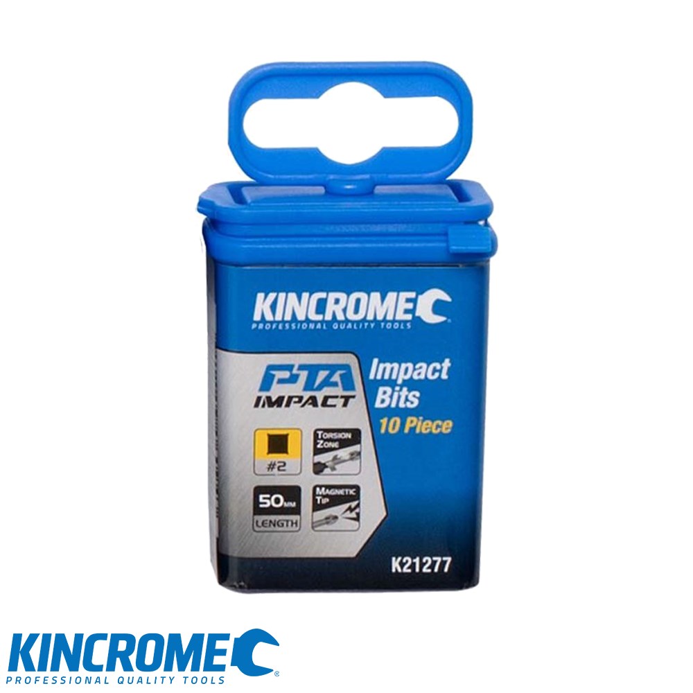 Kincrome's Square #2 Impact Bit 50mm 10 piece set features Torsion Control Zone to absorb extreme torque loads, Magnetic Precision Tip to prevent stripping and Impact Performance which is manufactured from S2 Steel, machined and treated.