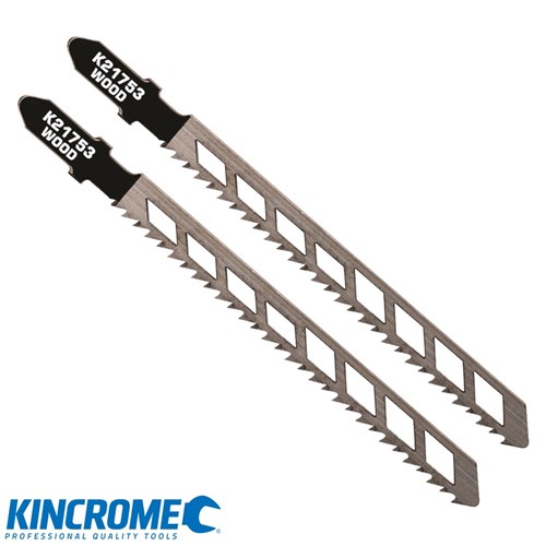 Kincrome's Skeleton Jigsaw Blade 2 Piece Combo Kit is designed with patented laser technology, ensuring a durable blade that produces straight and precise cuts, while the gill shaped notched maintain a cool blade. It features a T-Shank Blade which is compatible for standard common T-Shank Jigsaws, a 10 TPI 100mm Wood Blade which delivers high performance on all wood products and a 17 TPI 100mm Multi-Surface Blade which is most suitable for straight cuts. The teeth can be used as an application on Hardwood, Softwood, Laminate, Fibreboard and Plastic.