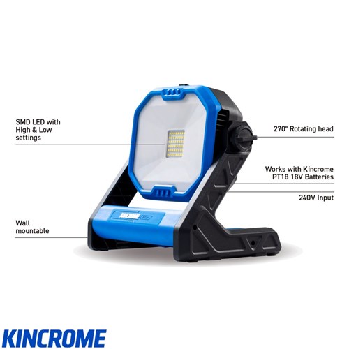 Versatile and powerful, the Kincrome 18V LED Area Light is perfect for everything from the job site to the camp site. Part of the PT18 (18V) platform, it delivers exceptional brightness with flexible power options, making it a reliable lighting solution wherever you need it. With a rotating head, multiple light modes, and hybrid 18V & 240V power capability, this light is built to perform in any environment.