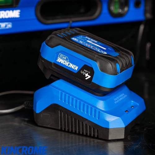- Includes 4Ah battery and 2A fast charger for extended runtime