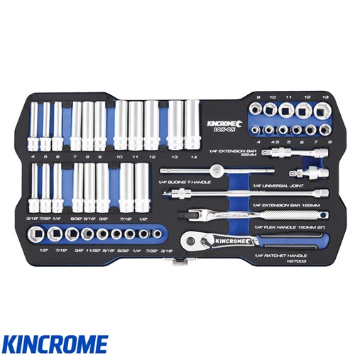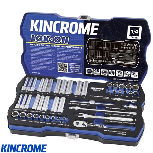 Kincrome LOK ON 1/4" Drive Imperial and Metric Standard & Deep Socket Set, 45 Piece