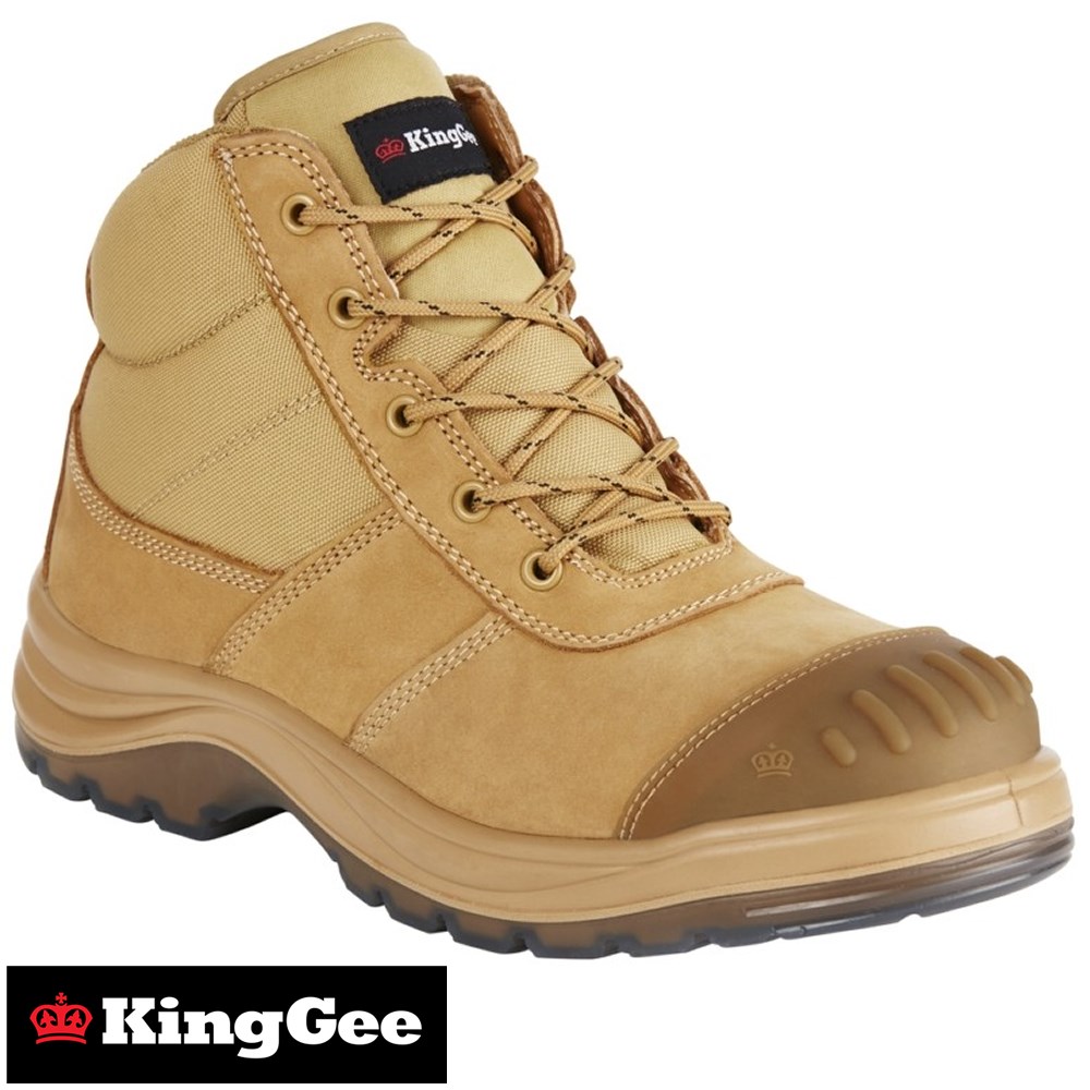 King Gee Tradie Safety Boot. These boots are made from Water Resistant Leather & Breathable Nylon. They feature a YKK 10 Gauge Coil Side Zipper, Dual Layer Memory foam / PU footbed, Dri-Lex lining treated with Aegis Anti-Microbial, PU toe bump, wide profile steel toe cap, Nylon (Non-Metallic) Shank, ARZ+ Pad Technology, TPU Outsole, PU Midsole and are 130 Degree Celsius heat resistant. They are also fuel,oil and slip resistant.