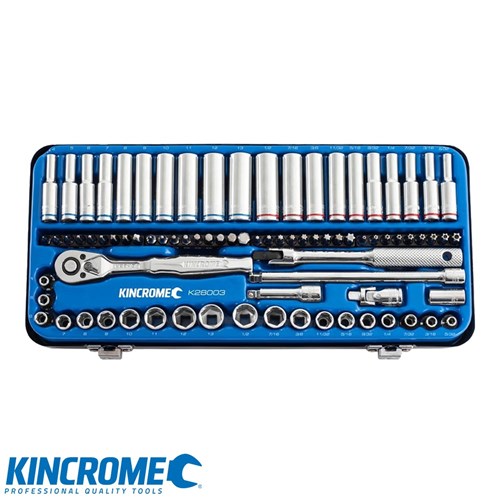 Kincrome's 82 piece Socket Set 1/4" Drive contains a range of Deep & Standard, Metric & Imperial Sockets, Phillips, Hex, TORX & Tamperproof Bits, as well as many quality accessories. Designed from Chrome Vanadium Steel, the set meets ANSI & DIN quality standard. All pieces are stowed in a durable carry case for your convenience.