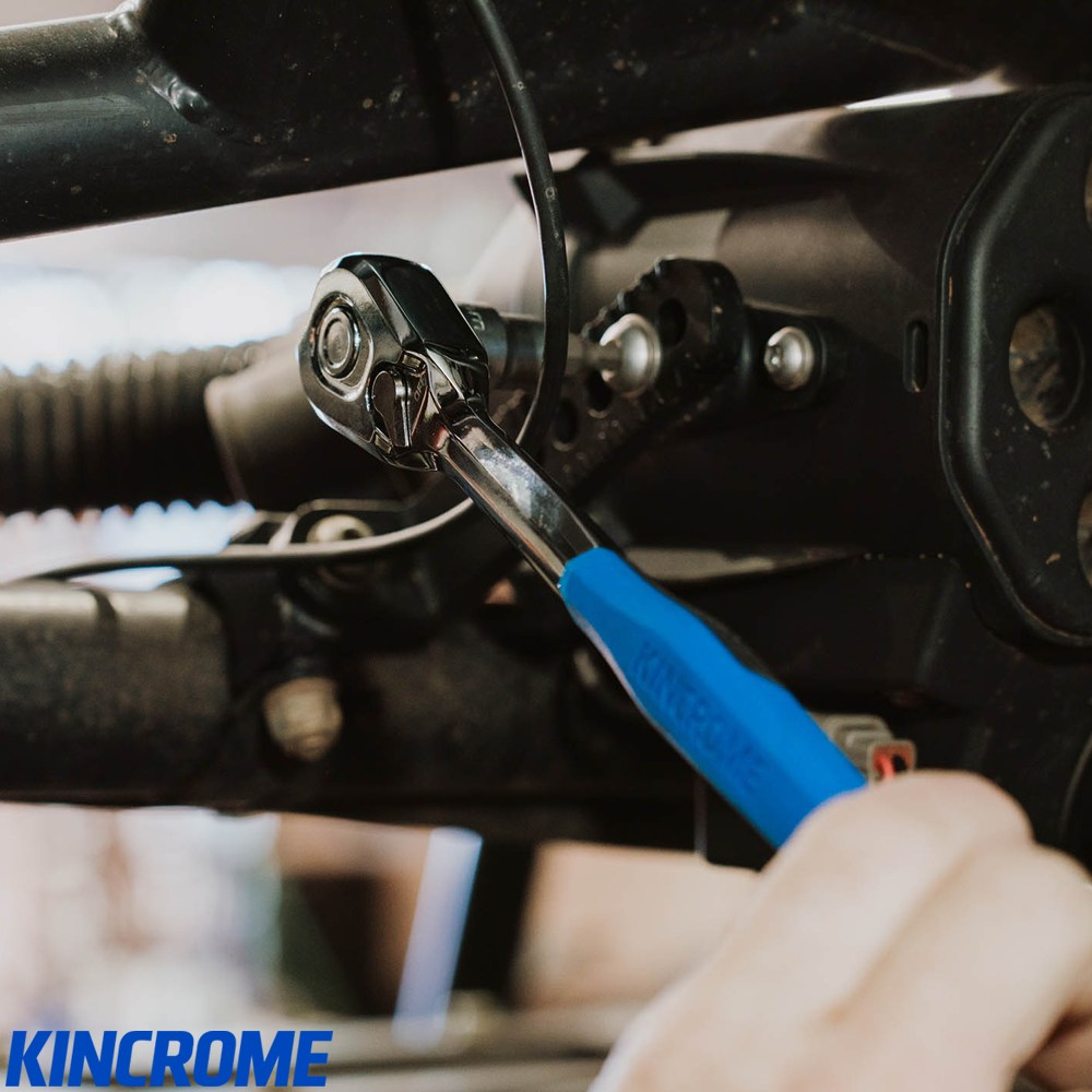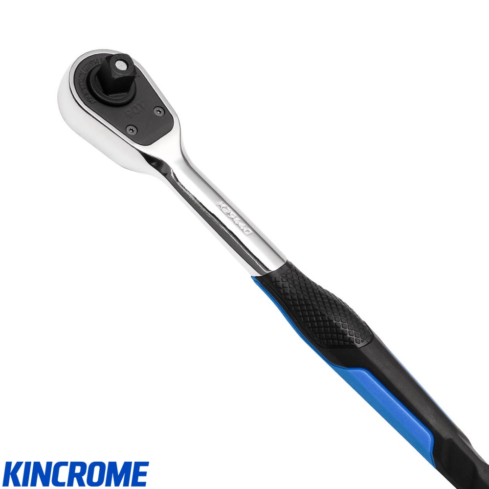 Experience precision, comfort, and durability with the KINCROME 3/8" Drive Ratchet. Designed and engineered in Australia, this ratchet features a 90-tooth mechanism for smooth 4° swing adjustments and a quick-release button for fast, one-handed socket changes. Crafted from premium Chrome Vanadium steel and paired with a high-performance TPR handle, it delivers exceptional grip, comfort, and resistance to oil and chemicals. With a longer handle for improved leverage, CHOKE GROOVE ergonomics for better hand placement, and clear end-stop drive-size stamping, this ratchet meets and exceeds DIN standards. Ideal for professionals seeking reliability, precision, and superior ergonomics on every job.