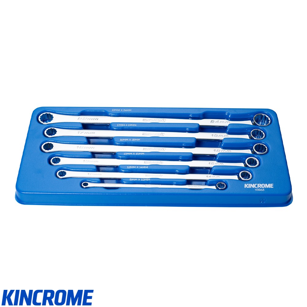 KINCROME Extra Long Ring Spanner Set – 0° Offset, Metric, 6 Piece