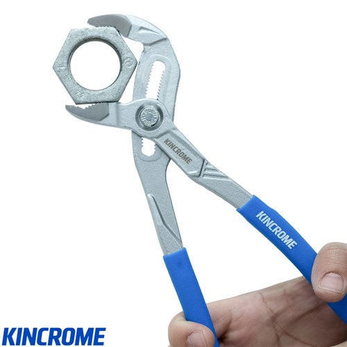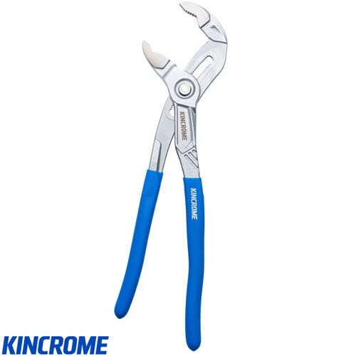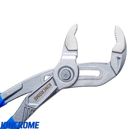 The Kincrome 12” Water Pump Multi-grip Plier is a heavy-duty tool designed for plumbing professionals and DIY enthusiasts alike. With an impressive jaw capacity of up to 60mm (M39) for nuts and 70mm (2-3/4”) for pipes, these pliers are perfect for tackling a wide range of plumbing tasks. Featuring 30 adjustable positions, the pliers ensure a perfect fit for varying workpiece sizes, while the self-locking mechanism provides a secure and stable grip on pipes, nuts, and irregular objects. Crafted from durable Chrome Vanadium Steel (Cr-V), these pliers are built to last and deliver excellent performance. The specially shaped jaws and precision-machined, angled serrated teeth maximize contact with the workpiece, reducing slippage and ensuring a firm hold. Induction-hardened serrated teeth (56~60HRC) guarantee durability, making them ideal for frequent use in demanding environments. The dual-guided box-joint design provides maximum stability and control, while the pinch guard feature keeps your fingers safe from accidental pinching. Comfort is key with the textured PVC grips that prevent slippage, even in wet or oily conditions, ensuring a secure hold while working. Whether you're tightening pipe fittings, adjusting nuts, or gripping irregular objects, the Kincrome 12” Water Pump Multi-grip Pliers are the ideal solution for a wide range of plumbing applications.