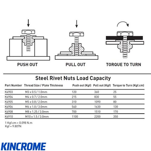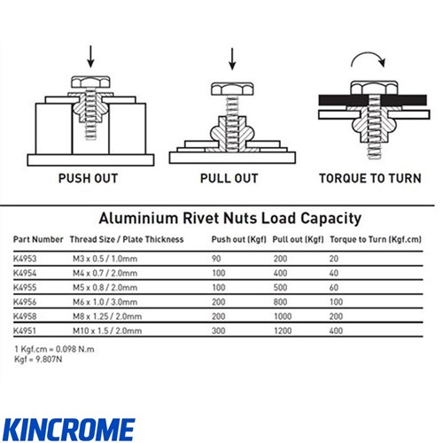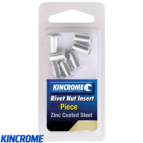 Kincrome rivet nut inserts are available in either aluminium or zinc-coated steel, offering versatile options to suit your specific needs. These inserts are compatible with most popular nut riveters.