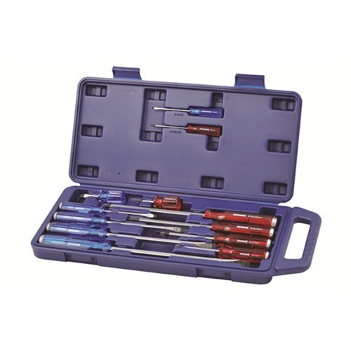 Kincrome 12 Thru-Tang screwdriver set features high impact celluslose acetate handle that gives superior strength & durability.The continuous Thru-Tang shaft combined with striking end cap is designed to withstand hammer blows. The square Chrome Vanadium steel shaft is designed for industrial applications and also features a magnetic tip. Features a hexagon shaft so a spanner can be attached for greater turning force. Comes in a heavy duty blow mould case. 6 x Blade & 6 Phillips drivers.