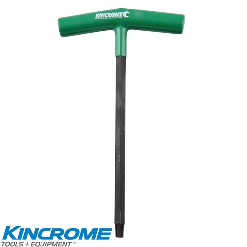 Kincrome T-Handles Hex Key, Torx. These T-Handles are manufactured from High Quality Chrome Vanadium Steel with a black phosphate finish for corrosion protection. The handles are PVC dipped (Chemical resistant) for comfort and maximum torque. Each size sold separately.