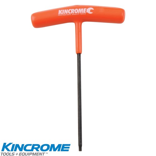 Kincrome T-Handles TamperproofTorx. These T-Handles are manufactured from High QualityChrome Vanadium Steel with a black phosphate finish for corrosion protection. The handles are PVC dipped (Chemical resistant) for comfort and maximum torque. Each size sold separately.