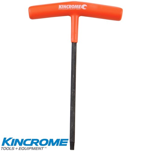 Kincrome T-Handles TamperproofTorx. These T-Handles are manufactured from High QualityChrome Vanadium Steel with a black phosphate finish for corrosion protection. The handles are PVC dipped (Chemical resistant) for comfort and maximum torque. Each size sold separately.