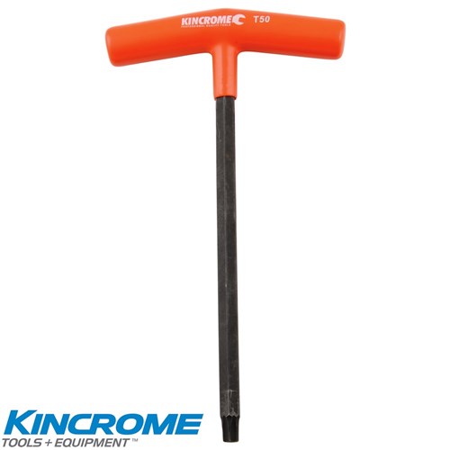 Kincrome T-Handles TamperproofTorx. These T-Handles are manufactured from High QualityChrome Vanadium Steel with a black phosphate finish for corrosion protection. The handles are PVC dipped (Chemical resistant) for comfort and maximum torque. Each size sold separately.