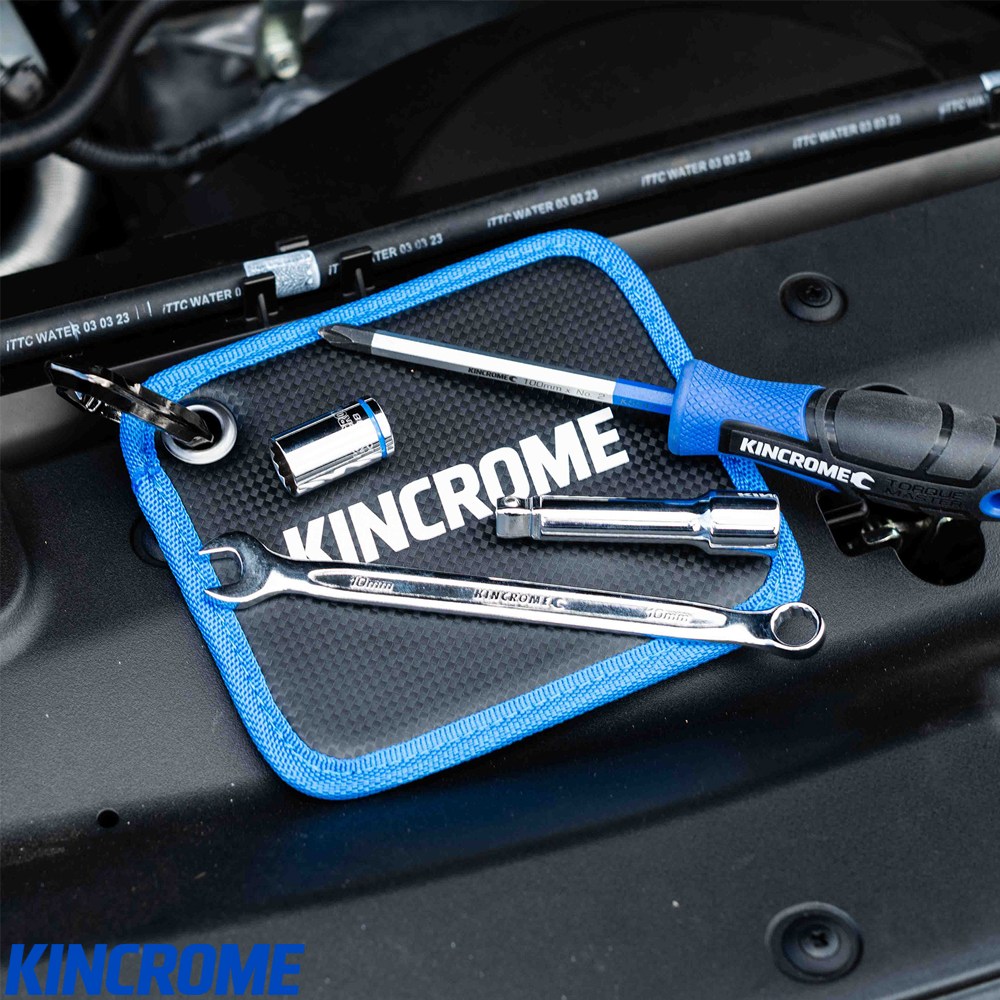 Keep your workspace organised with the KINCROME Magnetic Mat. Featuring strong rare earth magnets, this versatile mat securely holds a variety of tools and accessories on both sides. Its flexible design contours to curved or uneven surfaces, providing stability whether on-site, in the garage, or in the field. Compact and lightweight, it’s ideal for tool bags, belts, or quick-setup workstations. Mountable or hangable, it can be positioned exactly where you need it. Made from premium, durable materials that resist chemicals and water, this mat is built to last in demanding environments.